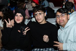 muslimischen Schüler*innen sich im Besucherbereich im Eingang der Moschee aufhalten und das Geschehen